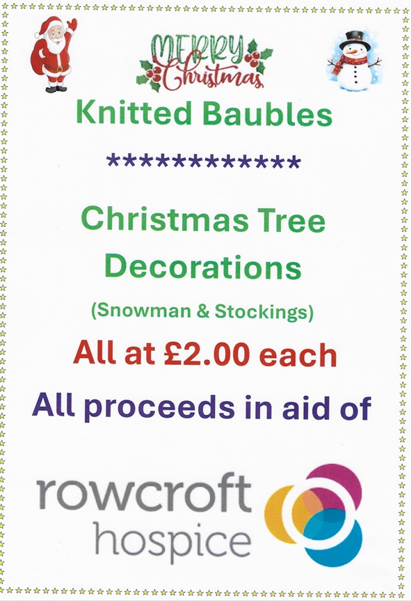We have Christmas decorations for sale in both our Torquay and Teignmouth clinics to raise money for Rowcroft Hospice.
